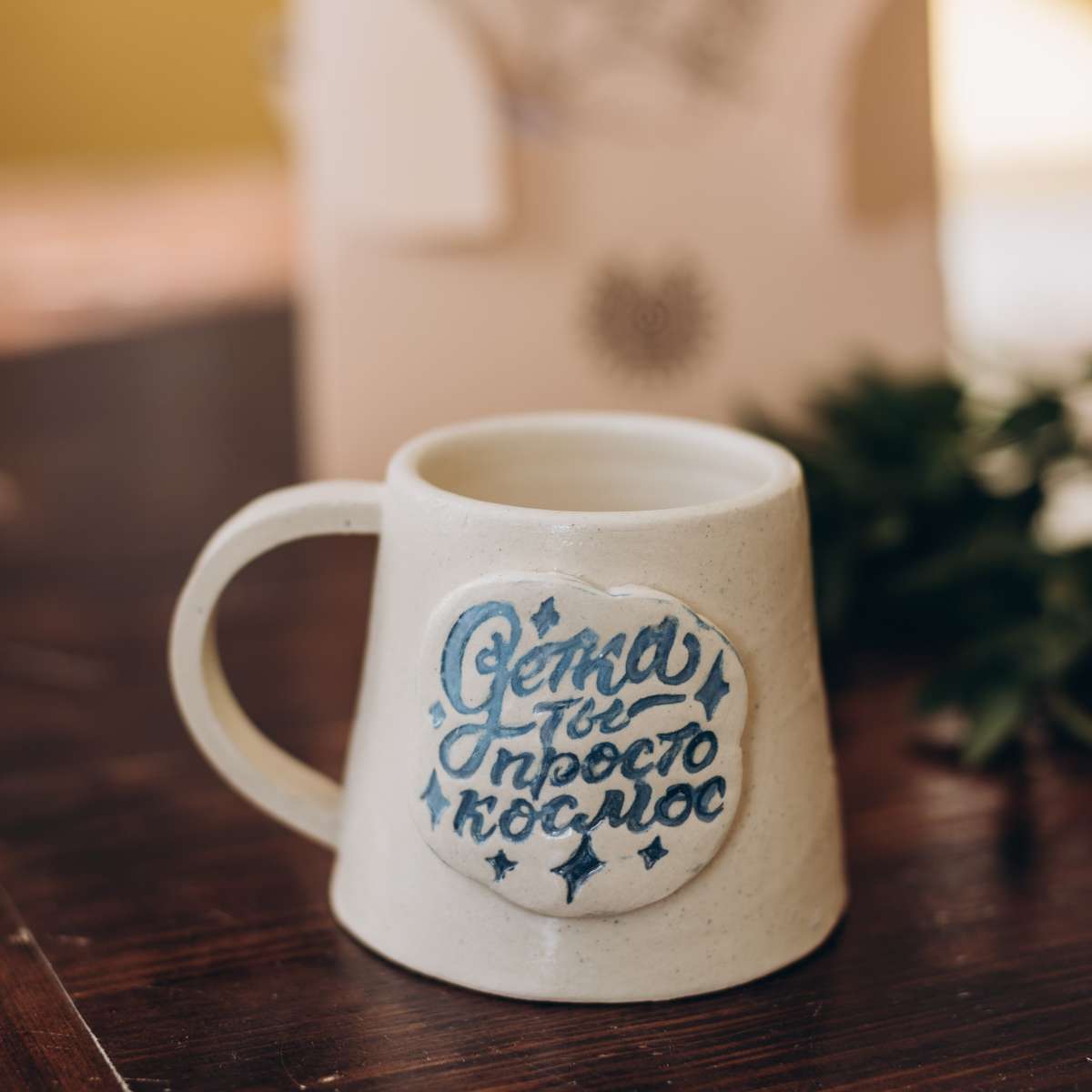 Красивая авторская каллиграфия и белоснежная глина - то, что надо для размышлений под запах свежего кофе или аромат горячего чая. Вариантов надписей очень много: юмор, мотивация, цитаты из фильмов, крылатые фразы. Здесь каждый выберет себе именно тот вариант, который ему придётся по душе.
