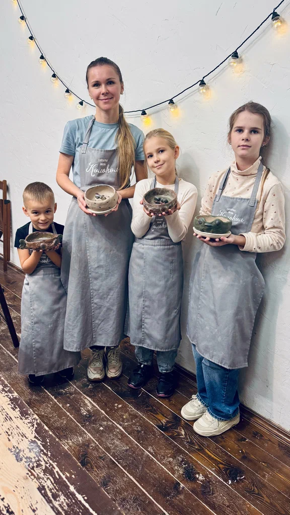 @Юлия ВотетинаГончарная школа «Колокол» — это потрясающее место: уютное, интересное и невероятно затягивающее!Впервые мы с подругой выбирали место, куда пойти, и выяснили, что обе давно мечтаем попробовать себя на гончарном круге. Решили записаться на мастер-класс «Сюжетная кружка», и это был потрясающий опыт! Процесс полностью погружает, успокаивает и вдохновляет. На выходе у нас получились красивые кружки, а к ним — маленькие магнитики, которые мы тоже слепили сами. Каждый — с разным настроением и своим характером.У них потрясающая атмосфера: в перерыве можно попить чай с печеньками, рассмотреть полочки с готовыми интересными изделиями, которые можно приобрести — это серьги, кольца, кружки, подставки, статуэтки… глаза разбегаются!Я настолько вдохновилась, что записалась на следующий мастер-класс, который стал подарком моей дочери на 9 лет. Она давно мечтала попасть в гончарную школу, дома много лепит и творит.Мы пришли всей семьёй — с мужем и детьми — на занятие «Кружка с сюрпризом». Каждый слепил что-то своё, и у всех получилось прекрасно! Даже наш пятилетний сын сделал собственное изделие — все были в процессе, все места заняты, атмосфера творчества просто витала в воздухе.Сегодня я забрала готовые работы и почувствовала себя Дедом Морозом: пришла домой с целыми пакетами сюрпризов! Ведь пока раскрашиваешь заготовку, до конца не понимаешь, какой она станет после обжига. Краски загораются яркими цветами, глазурь даёт невероятный блеск — результат каждый раз радует и удивляет.Особенно хочется отметить мастеров: они всегда помогают, подсказывают, направляют. Абсолютно не нужно переживать, если нет опыта. Даже если кажется, что «не умею» или «не получится» — всё получится, и даже лучше, чем вы ожидали!Очень рекомендую посетить это чудесное место! Здесь можно отвлечься, творить, вдохновляться и провести время с близкими по-настоящему тепло и душевно.