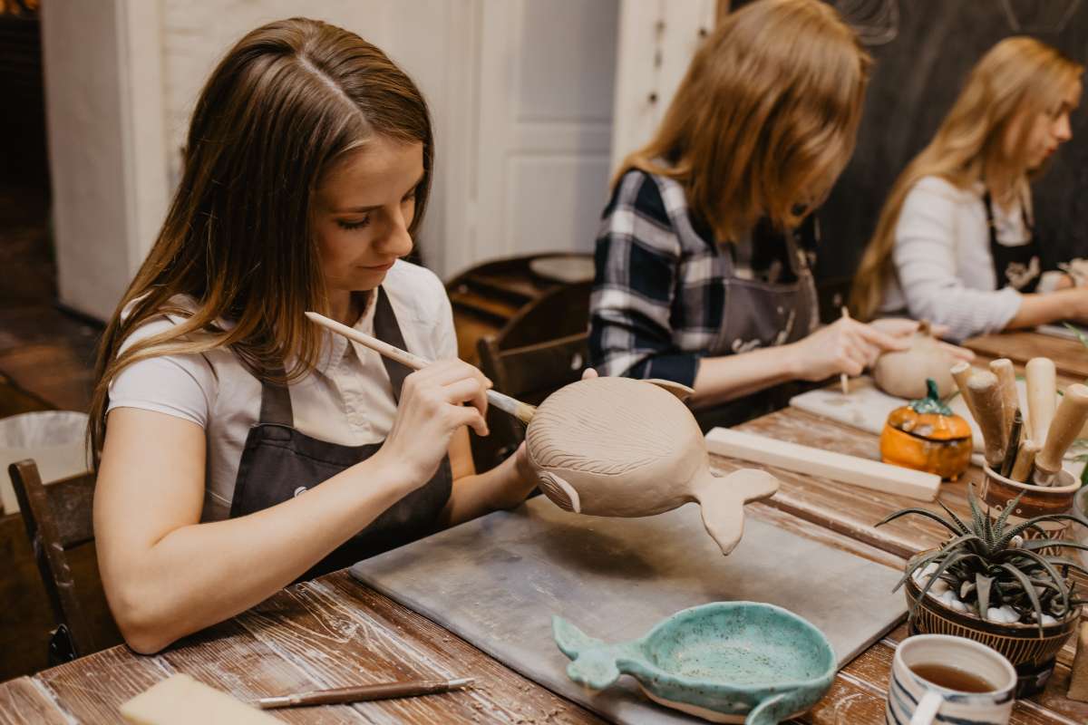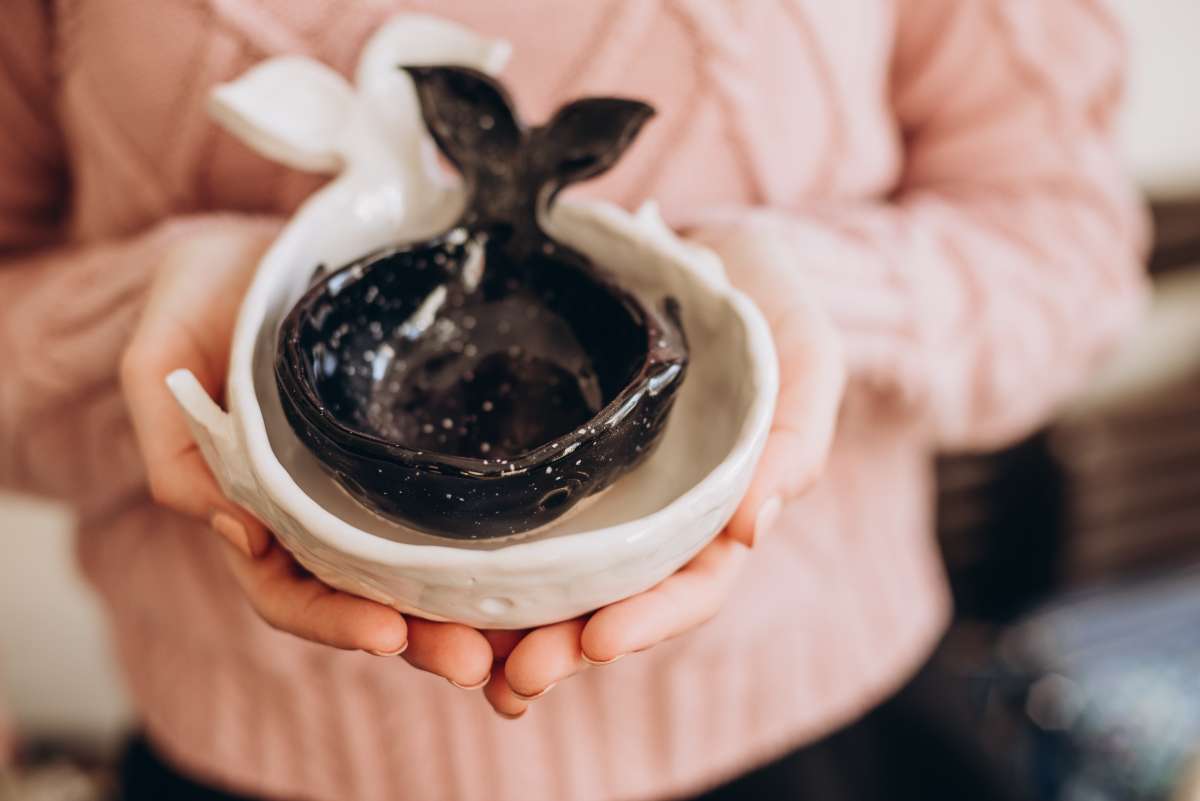 На нашем мастер-классе вы сможете сделать своего уникального кита, отдавшись полету фантазии. Вы вылепите руками мисочку, а после вырежете и прикрепите хвостик и плавнички. После чего сможете сделать на ките узоры и выбрать цвет глазури, которой мы его покроем после первого обжига.