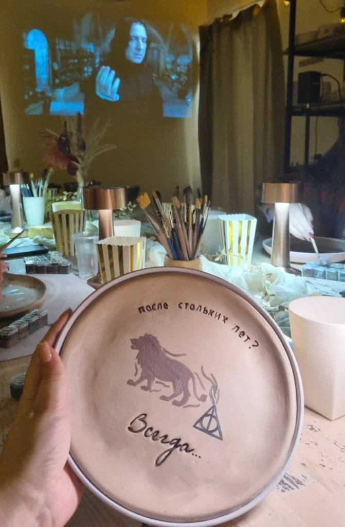 @НатальяБыла на кинолепке, замечательный формат: смотришь любимый фильм, лепишь и расписываешь тарелочку. Спасибо нашему мастеру Амари, было все понятно и интересно, хочется ещё вернуться
